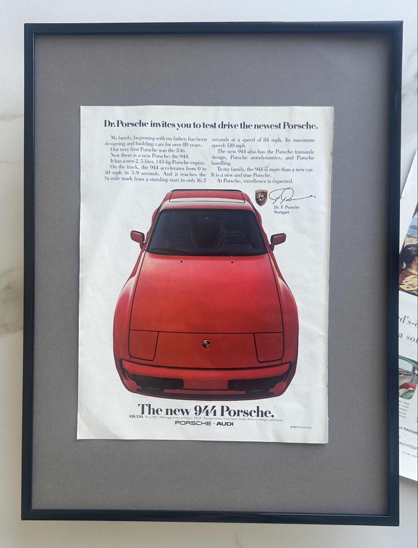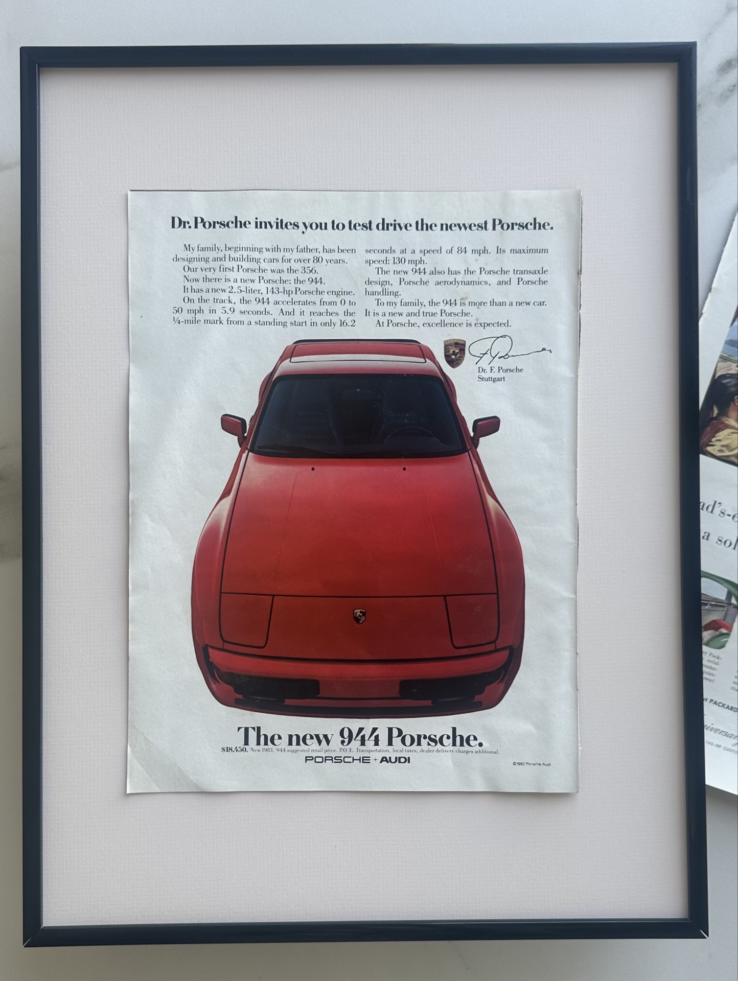 Винтажная реклама Porsche 944 от 1982 года